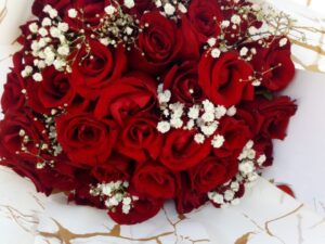 RED ROSES WITH BABY BREATH & FERRERO ROCHER CHOCOLATES