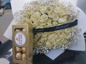PURE WHITE ROSES AND FERRERO ROCHER CHOCOLATES