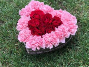 MINI- HEART BOX ROSE ARRANGENT WITH 4TH STREET RED WINE