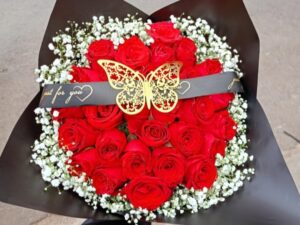 CUSTOMIZED SQUARE BOX WITH RED ROSES & FERRERO ROUCHER CHOCOLATES