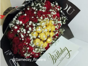 WHITE & RED ROSES WITH FERRERO ROUCHER CHOCOLATES