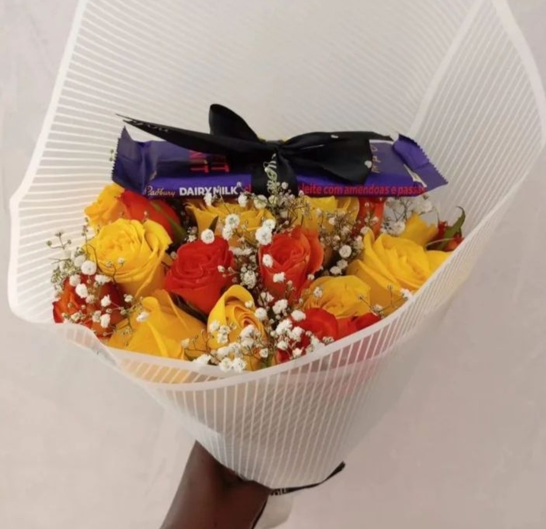YELLOW & ORANGE MIX OF ROSES WITH CADBURY CHOCOLATE